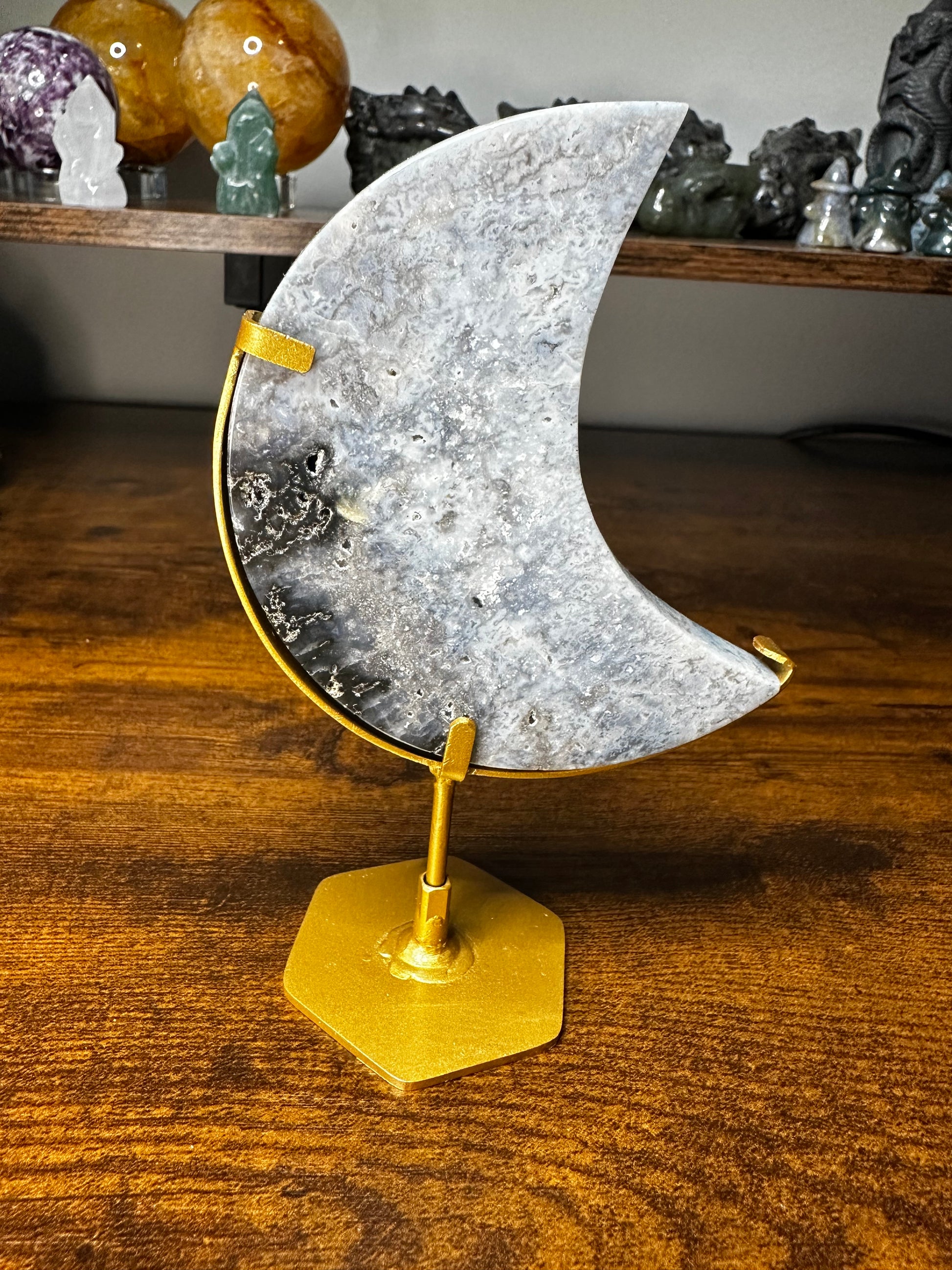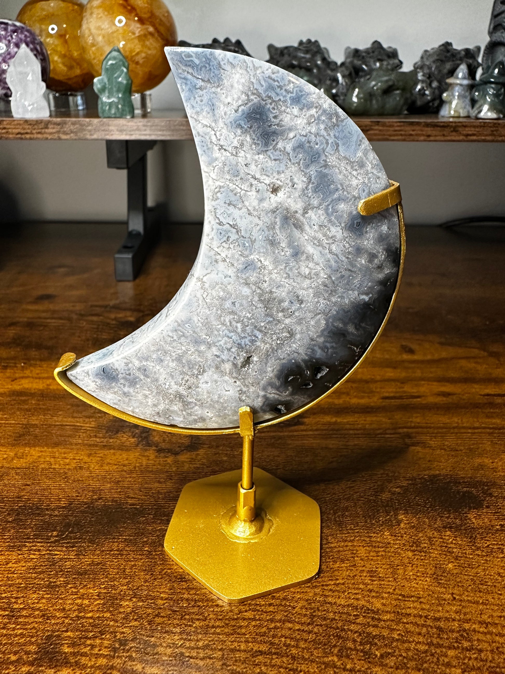 Blue Plume Agate Moon